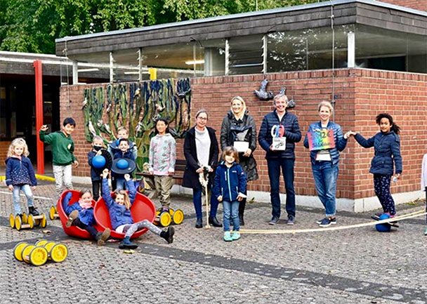 Der Lions Club Kempen ist Hauptsponsor für das neue Klettergerüst an der Astrid-Lindgren-Schule gewesen. Gleich bei der feierlichen Übergabe nahmen die Mädchen und Jungen der Grundschule die Seillandschaft in Beschlag und hatten dabei einen Riesenspaß. Das Spielgerät bietet den Kindern nicht nur Abenteuer und gesunde Bewegung an der frischen Luft. Es werden auch Motorik, Kraft, Ausdauer und der Gleichgewichtssinn trainiert. „Außerdem entwickeln die Kleinen so spielerisch ein Körpergefühl und lernen beim Balancieren und Hangeln, aufeinander Rücksicht zu nehmen, sich zu helfen und aufeinander Acht zu geben“, so der aktuelle Kempener Lions-Präsident Michael Starke.
