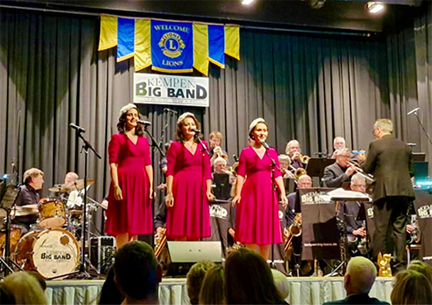 Im ausverkauften Kolpinghaus in Kempen rissen die Kempen Big Band unter Leitung von Markus Türk und das Trio Fräulein Swing das Publikum mit. Die ausgebildeten Opernsängerinnen präsentierten beliebte Melodien der 1920er bis 1950er Jahre im Close Harmony Stil. Auch der immer souveräner auftretende Ilyas Adjana, Sänger der Big Band, begeisterte das Publikum mit Weihnachtsklassikern wie „Santa Claus is coming to town“. Das vom Lions Club organisierte Konzert „Swinging Christmas“ ist seit 2014 ein fester Bestandteil im reichhaltigen Kempener Kulturjahr. Der Schirmherr des Benefizkonzerts, Bürgermeister Christoph Dellmans würdigte in seiner Ansprache. Der Erlös des Konzerts kommt den Hilfsprojekten des Lions Club Kempen zugutekommt.